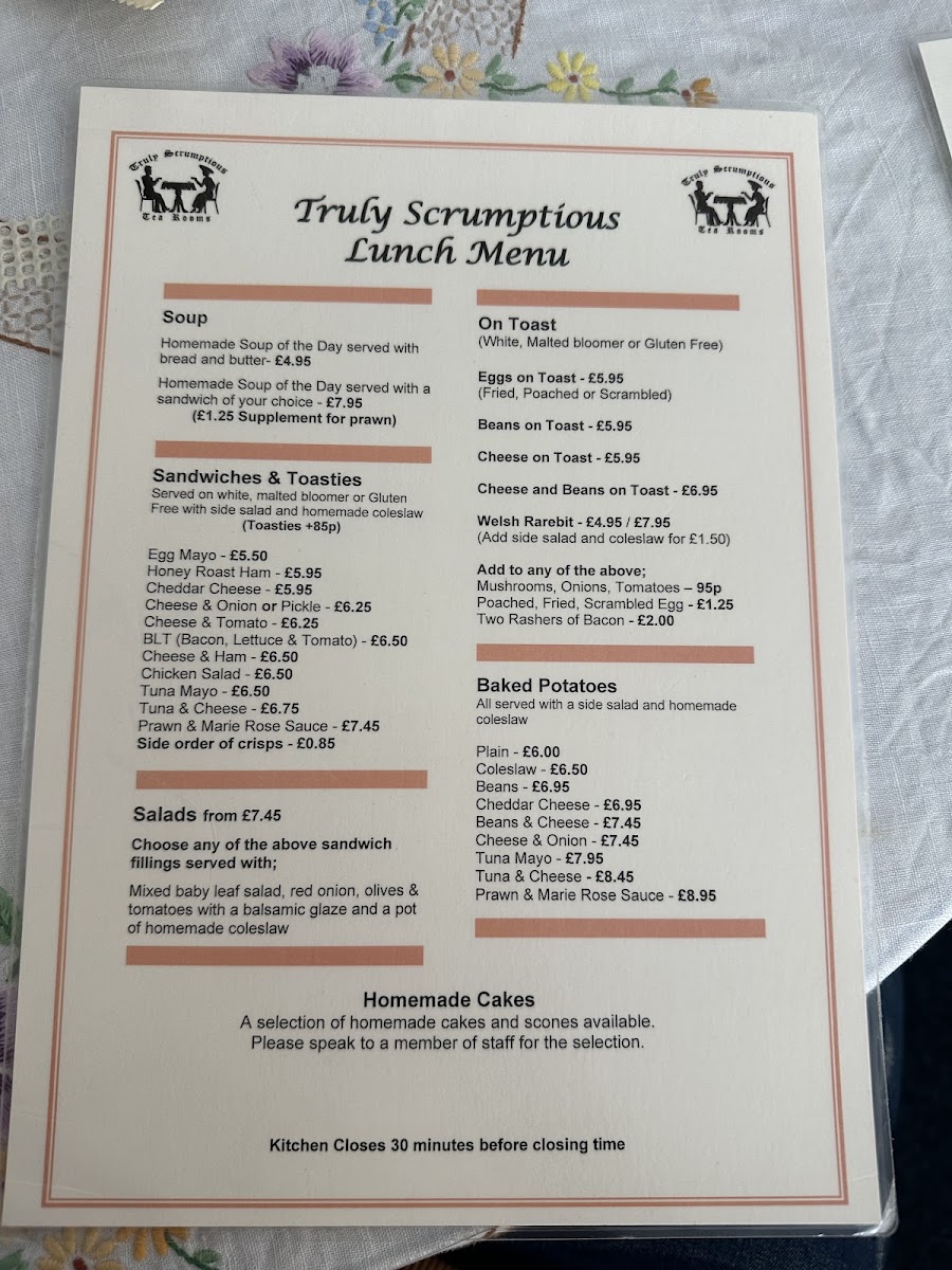 Welcome to Truly Scrumptious, a delightful cafe nestled in the heart of Mold at 8 King St. Renowned for its warm ambiance and friendly service, the cafe offers an enticing menu perfect for breakfast or lunch. Indulge in a variety of sandwiches, from classic Egg Mayo (£5.50) to the flavorful Prawn & Marie Rose Sauce (£7.45). The toast offerings, featuring delicious Welsh Rarebit (£4.95), bring comfort to your palate, while the homemade soups make for a cozy choice on any day (£4.95). Customers rave about the generous portions and delectable homemade cakes that accompany their steaming hot drinks. Enthusiastic reviews highlight the attentive staff, whose service enhances the overall dining experience. Truly Scrumptious strikes a lovely balance between quaint charm and culinary delight, inviting you to savor each bite amidst delightful decor. Don’t miss out on this gem where every dish truly lives up to its name!